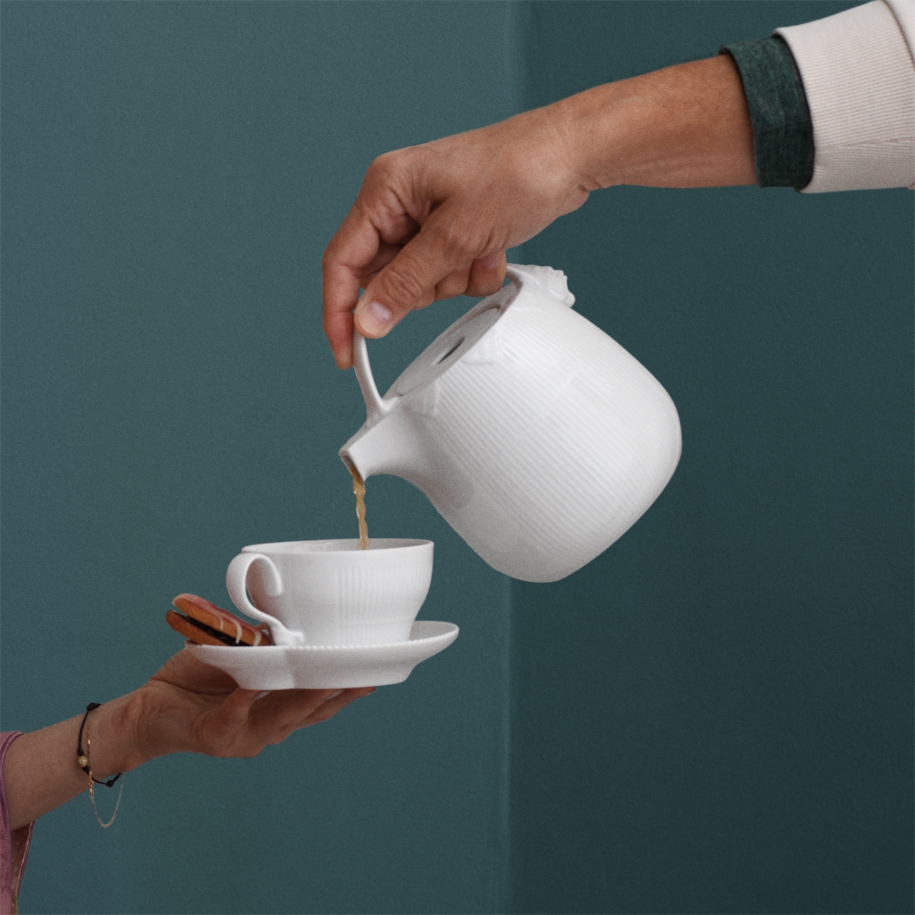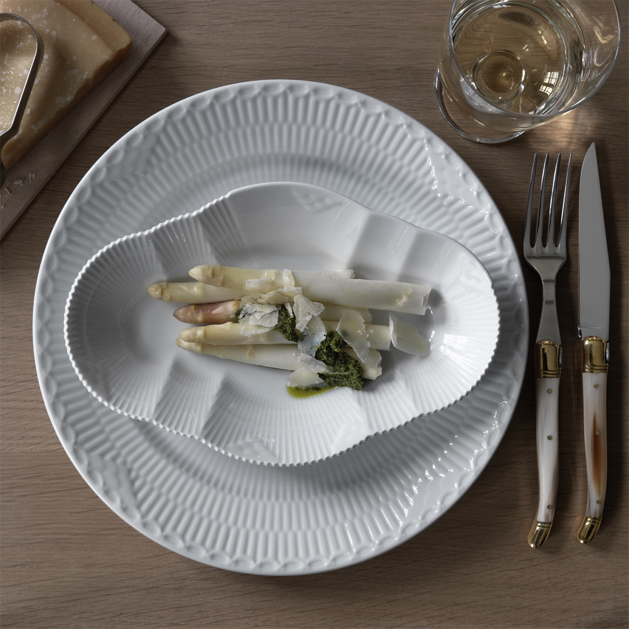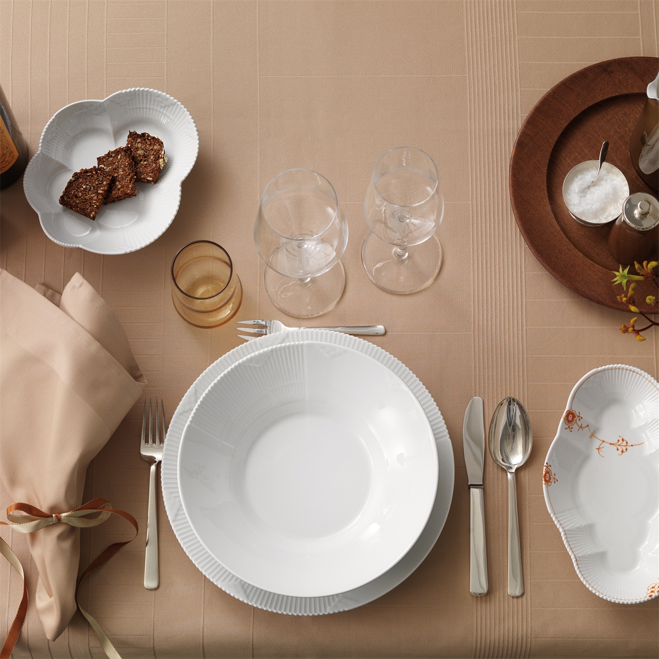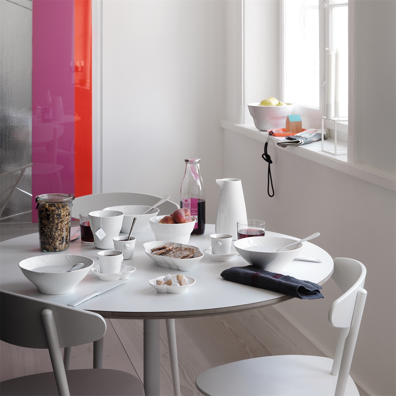 The brief: to design a brand new, yet 100% recognisable as Royal Copenhagen, full dinner service, which focuses on all the fine traditional qualities of the company whilst still gently pushing the boundaries, has been one of our greatest challenges to date. The service will grow bit by bit, year after year from now. To view the complete range, please visit Royal Copenhagens website.