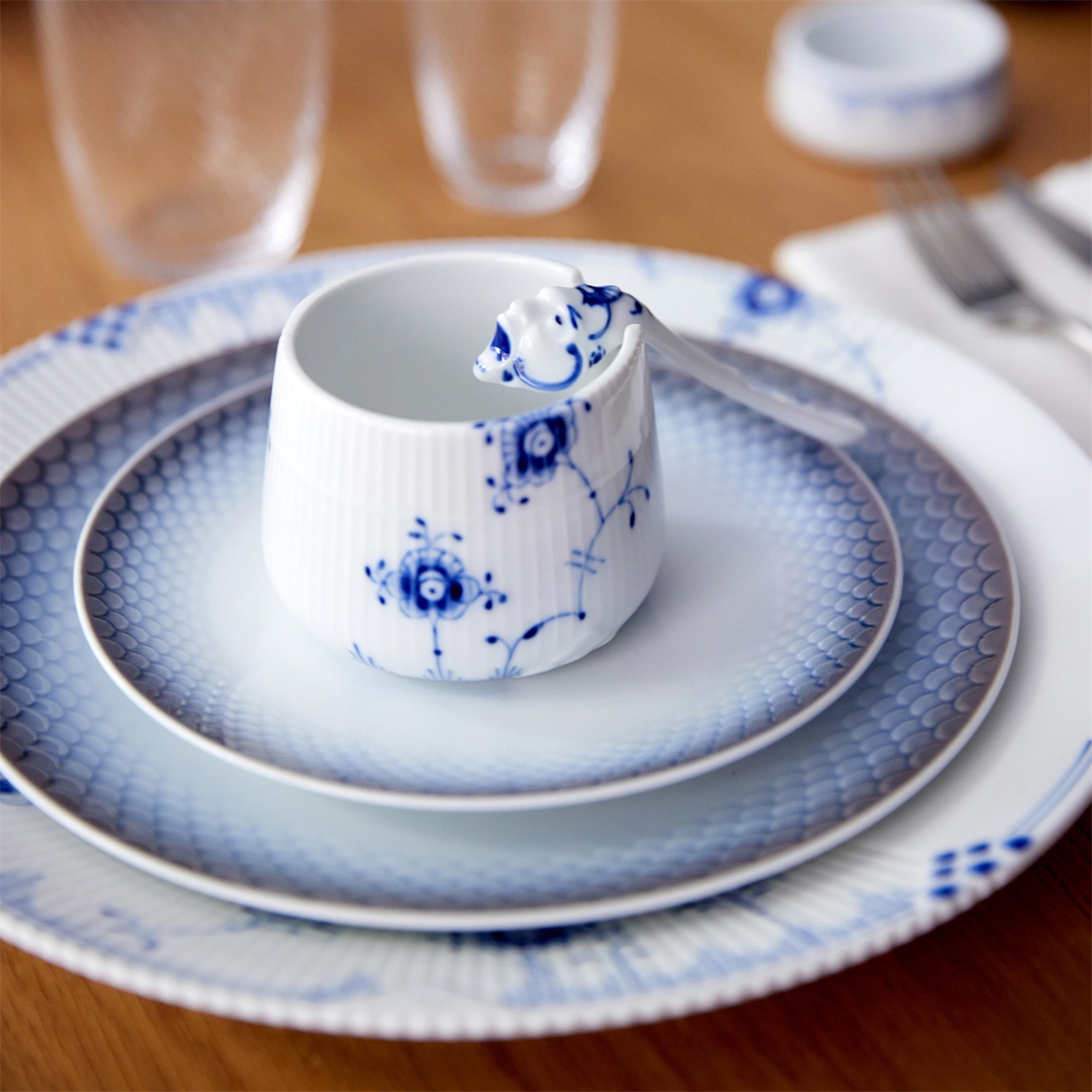 Then came Blue Elements. Blue is painted with the classic Royal Copenhagen blue, and is in-glazed, requiring one less journey to the ovens than the under-glazed Multicolour, enabling a lower price and more decoration.