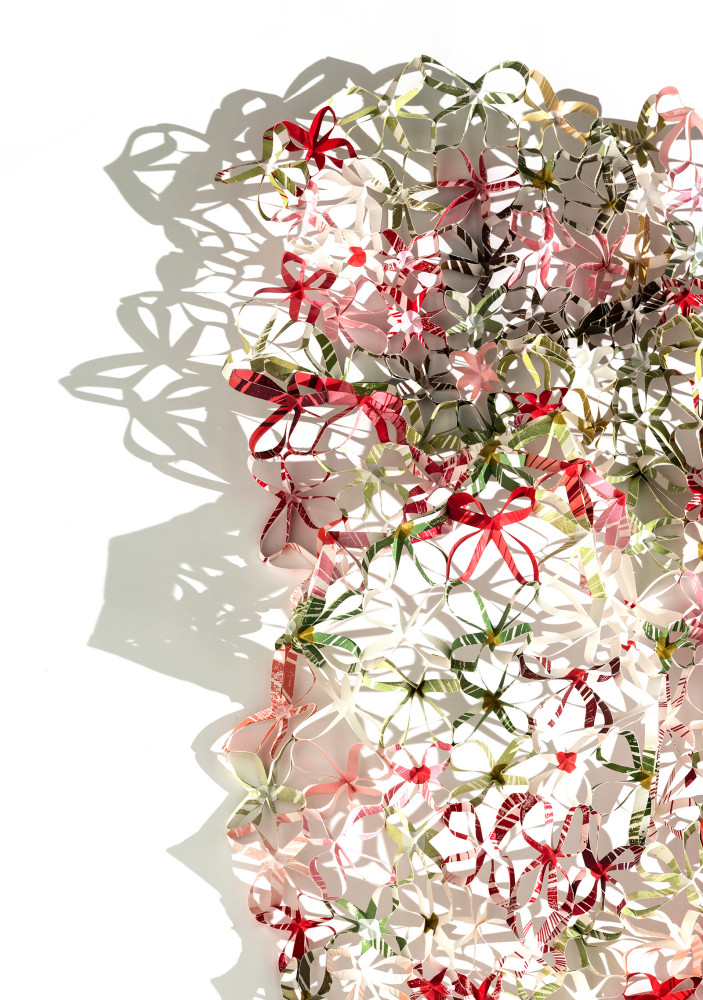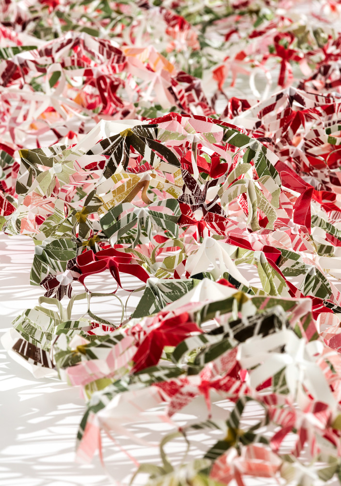 - Materials: Lino cut, printed, cut, folded, assembled paper = all by hand.
