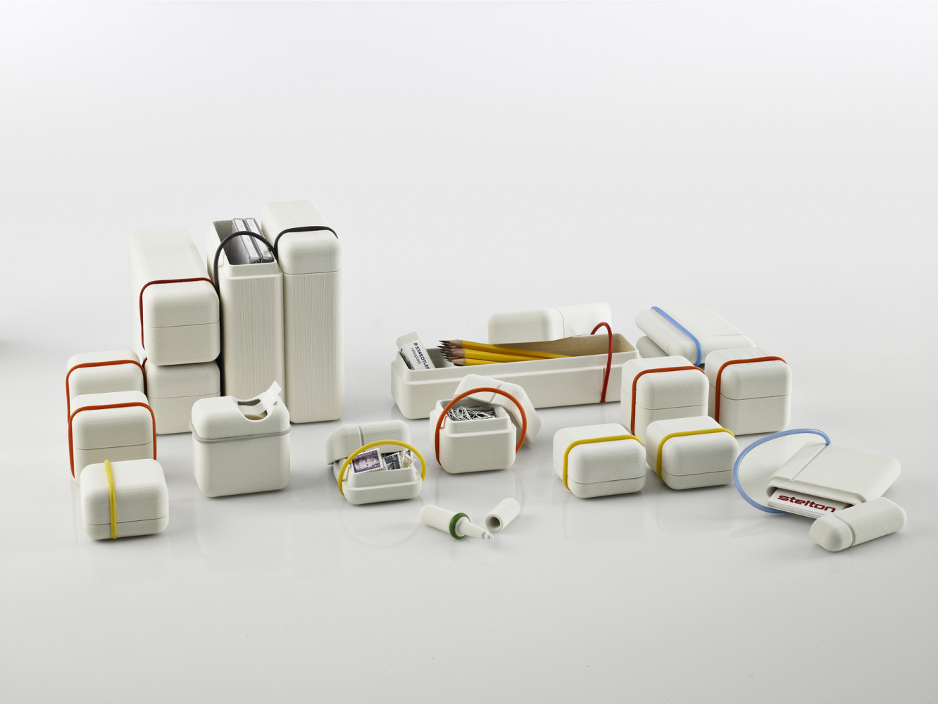 This series intends to make life around the desktop environment easier. Be it at home or at work. The fourteen containers are easy to transport from place to place, and simplify the challenge of organising the many accessories so many of us depend upon.