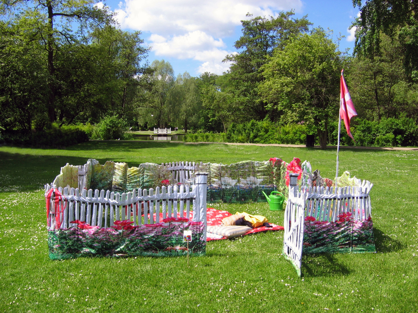 Comes complete with flag, garden gnome, vegetables, flowers and fence. Stack of firewood, parasol, beers and garden tools are optional.