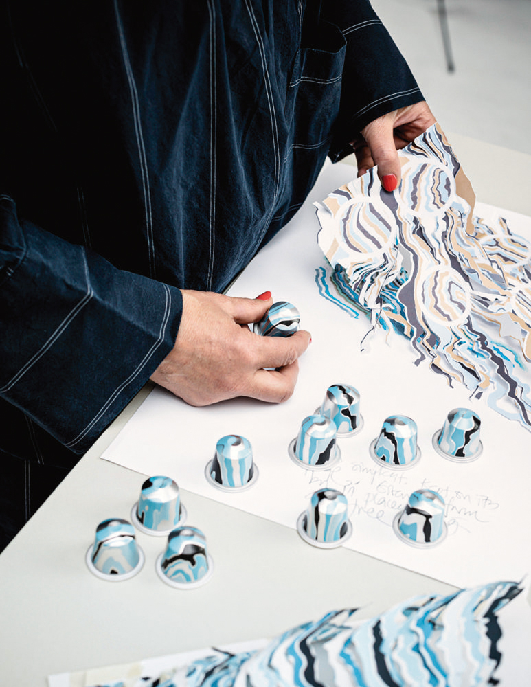 Basing all designs on height curves found in maps of the Nordic countries gives a multitude of layers suitable for hinting at the many complex layers of the Nordic cultures, layers of scent and taste in the chosen Nespresso flavours, and a freedom of scale perfectly suited for use on both the tiny capsules and in large flagship store windows.