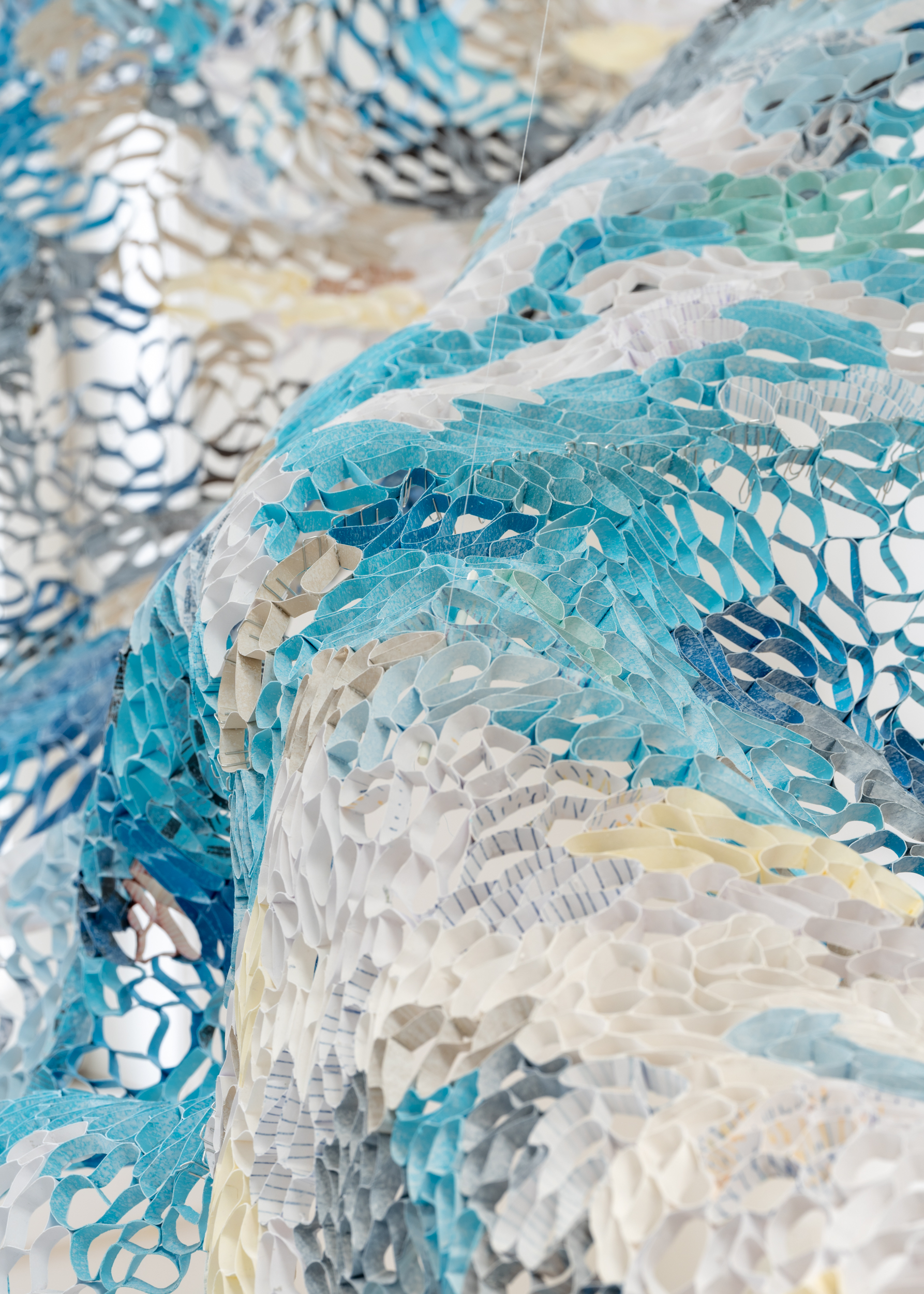A simple task. To cut, fold and manually assemble strips of 1cm wide, circular cut paper within a select array of colours. Every single day for a whole, dark winter. The tempo unadjustable. In search of peace in the process and therefore also, hopefully, in the result.