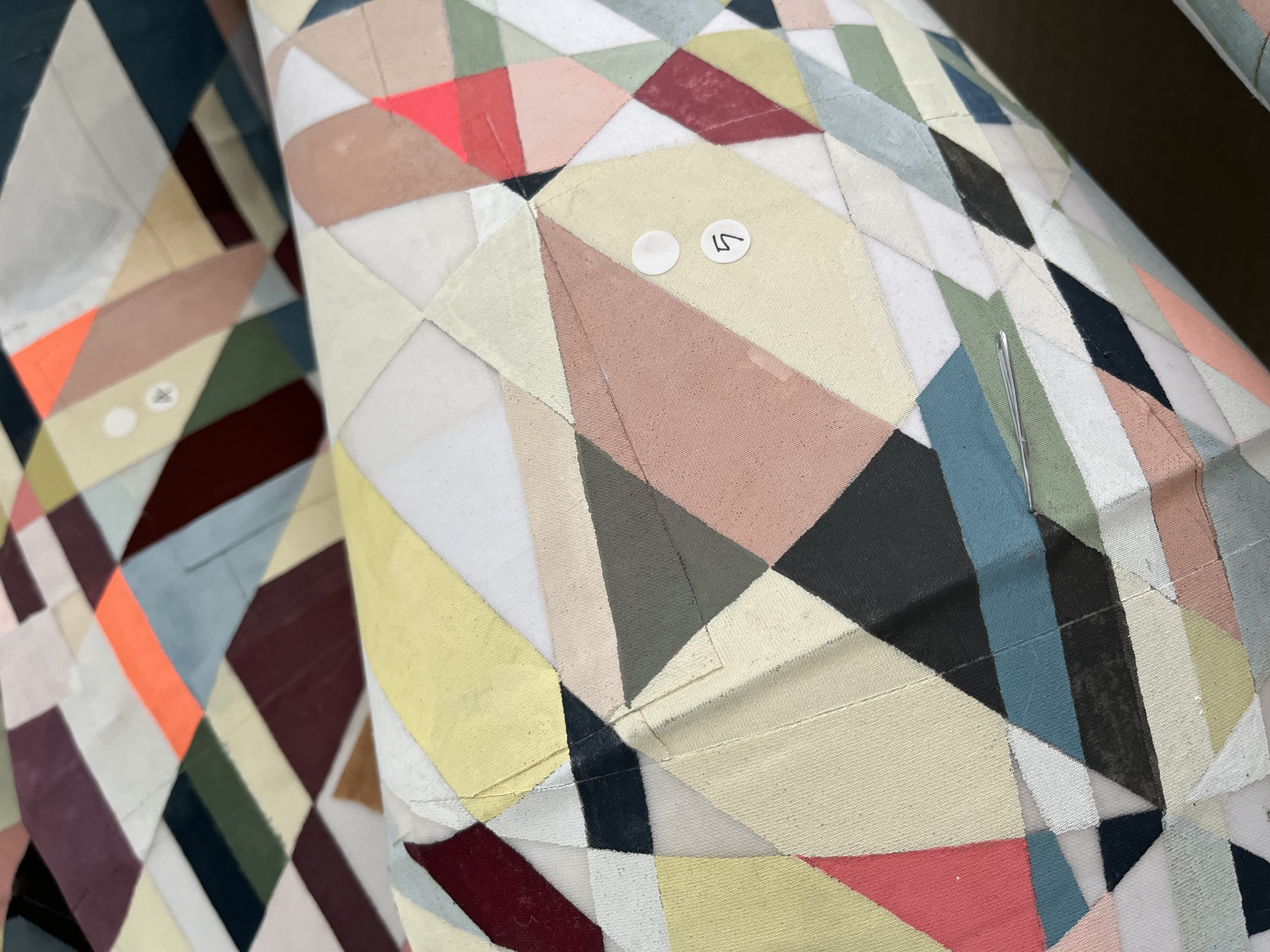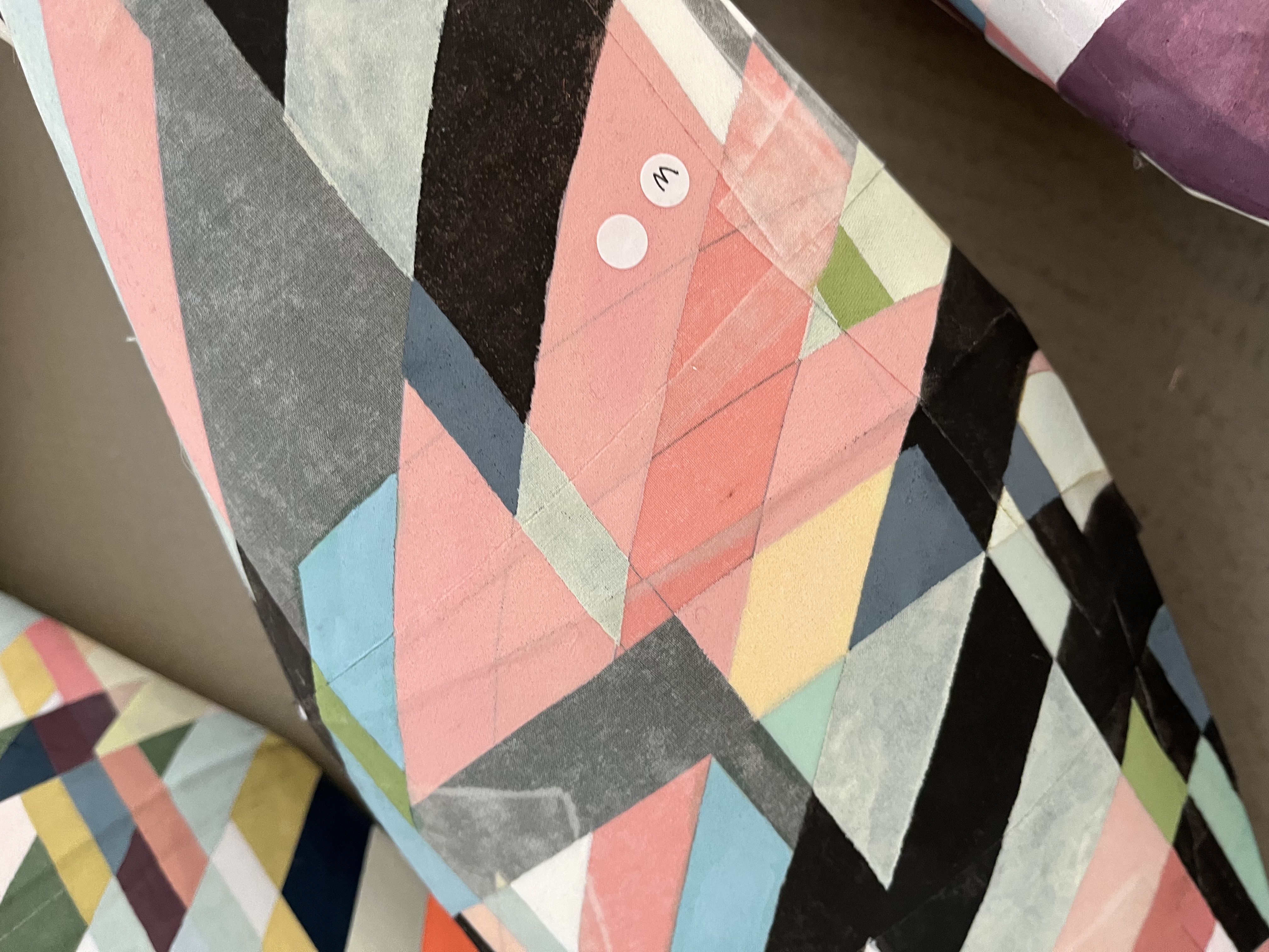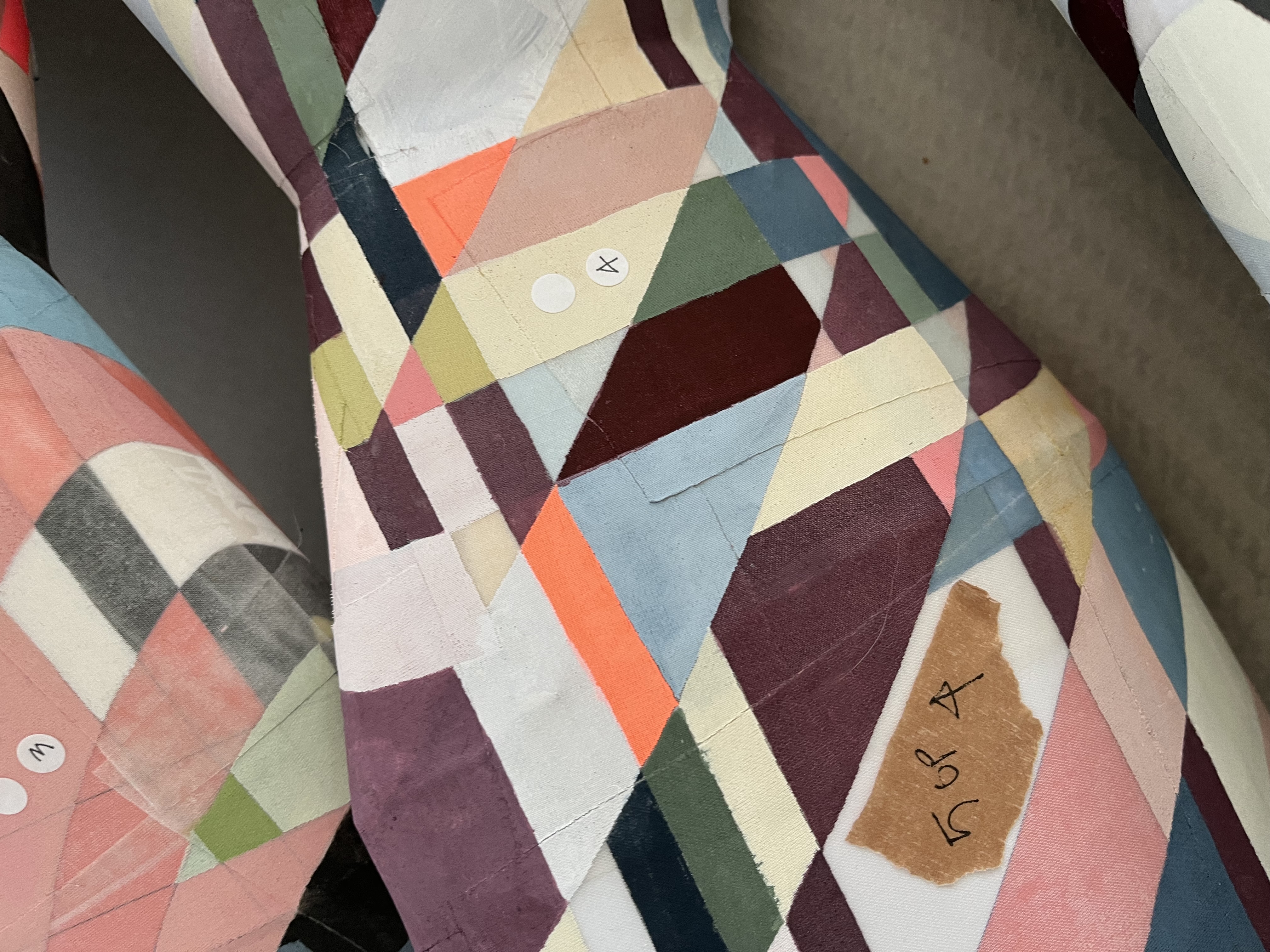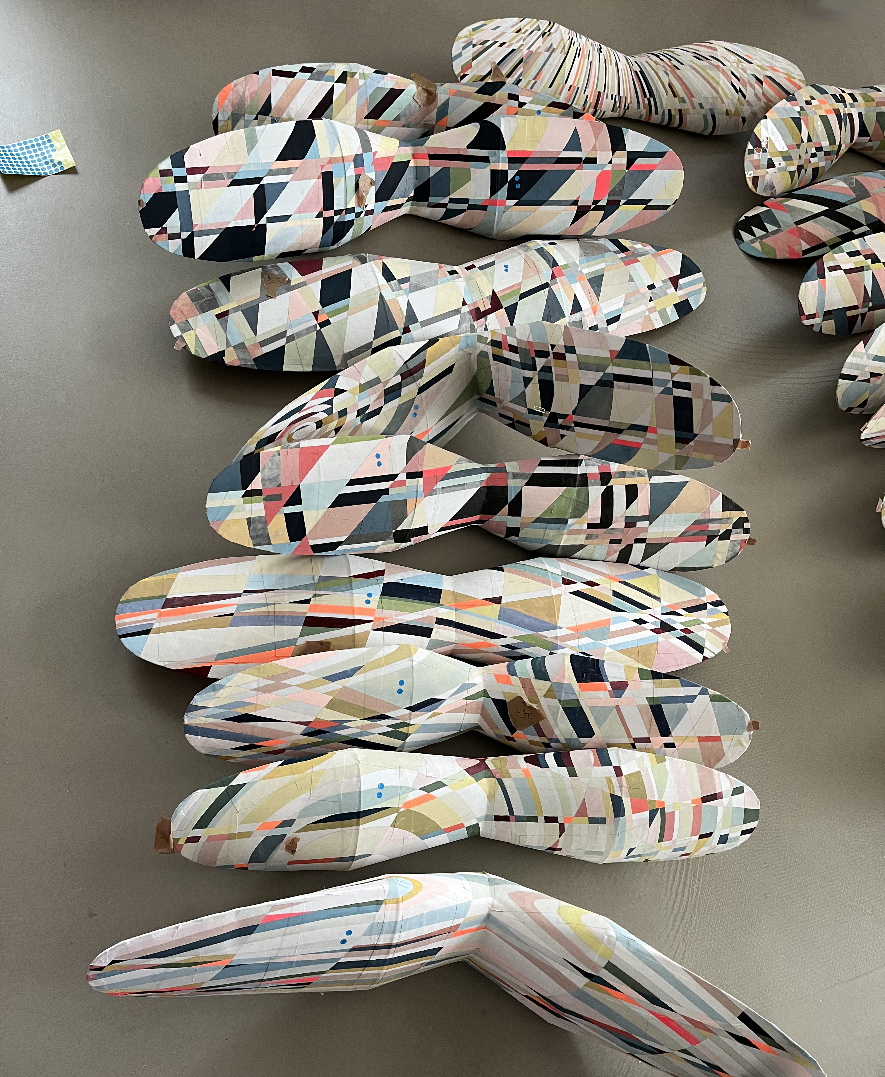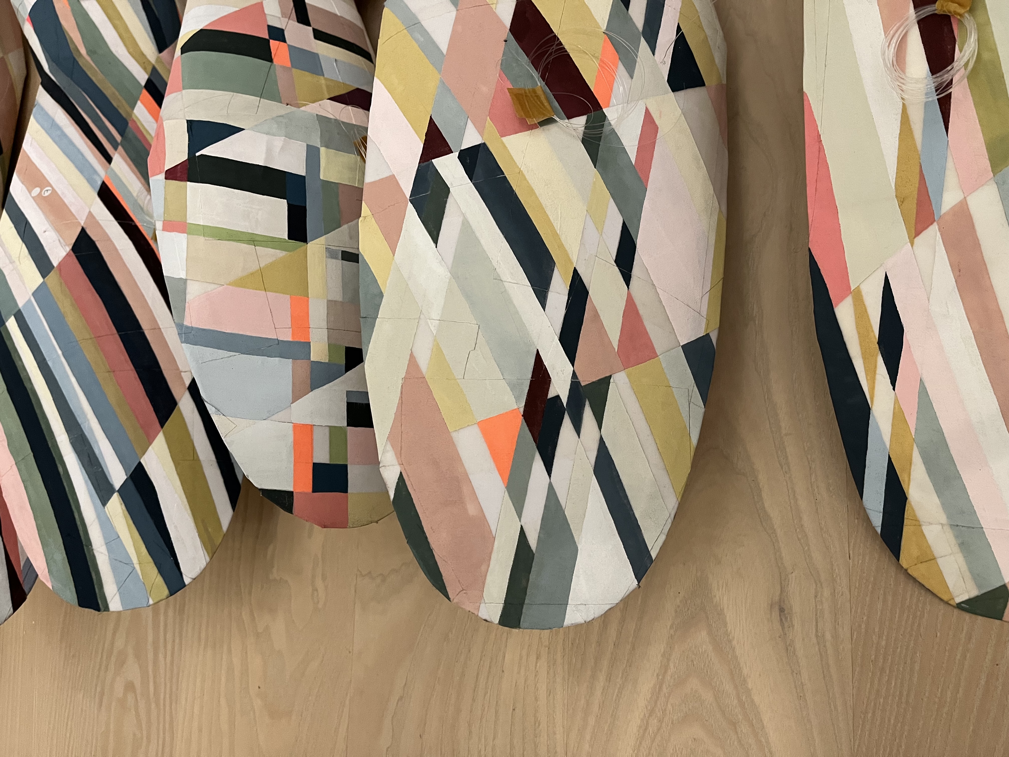 My contribution to this design exhibition is a humble counter-balancer to Denmarks arms contribution to the war in Ukraine. This year including 19 F 16 fighter jets. Possibly very necessary, but definitely extremely damaging on all levels. On the day this action was announced my hands began the slow process of making a formation of 19 altogether differently harmless sets of fluttering arms. Mirroring patches of attempts at maintaining ordinary day to day direction. Holding their breath, frozen in time. Assembled from paper and silk, superfragile, but airborn and ready on time for export to Sweden.