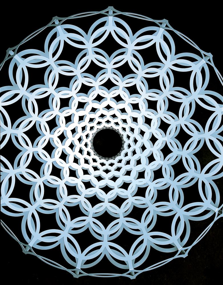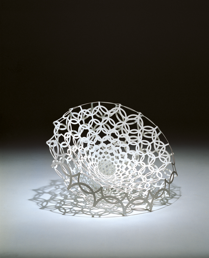 Consists of 160 circles, and focuses as much on shadowplay as on construction. The chair rocks sideways. It was designed by cutting small paper models by hand, and the intention was for the result to look as fragile as the original models. It does, but it is as strong as can be.